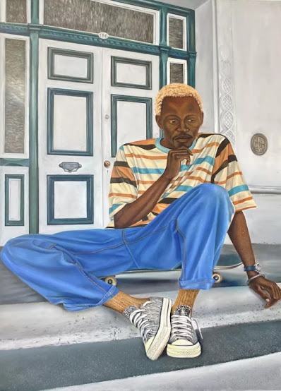 Aviwe Plaatje was born in South Africa and continues to paint there. He had informal training as an artist and Kiaf Soeul is his second art fair after 1-54 Contemporary African Art Fair. His work deserves great contemplation. His subjects are often male but not always and usually set in leisure, gracefully contemplating life or relaxing with family or friends. Whether they are smoking a cigarette or simply daydreaming the focus is on the male figure. These are familiar beings to the artist and that is obvious considering the comfort and intimacy with which he paints. The subjects are rendered within familiar surroundings, either at home or close to it. They're never far from the Africa they know best. We look forward to seeing him at more art fairs in the future.