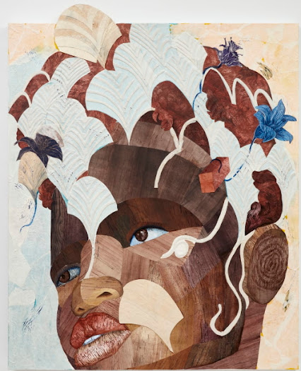 here. I'm glad to see him doing well and selling well too. Alas, Raelis Vasquez's Amidst is a beautiful portrayal of a youth standing in the water almost waiting for his portrait to be made. It is rich in colour and shows an innocence captured with every brushstroke. Patrick Martinez, LA Tile and Stone's is a bold painting showing a rich colour field reminiscent of Mark Rothko. It would look good in any home. The show also included one of my favourite artists Elliott Puckette whose Untitled work is full of sinuous lines, the type she is well known for. Davide Balliano is another artist I am quite fond of with his tubular shapes he reminds one why abstract art is so highly prized. Kehinde Wiley's Morpheus 2022, is a wonderfully rendered work of a young black woman set reclining against a backdrop of flowers. We wonder what she is thinking about and the answer remains a mystery. Another great work is Ruth Ige's At the gathering, 2022, whose display of a faceless woman piques our interest. With her delightful dress we can't help but wonder who it is. Dread Scott's B Ball Youth on Rim, 1994 is hopeful take on a group of youth enjoying their daily game in dire surroundings. It's a reminder of social stratification in America which can be curtailed with the right energy and belief in oneself. Please enjoy these and the rest as they all share a high degree of skill and talent. Not all of them can be written about but you get the idea of why they're here.